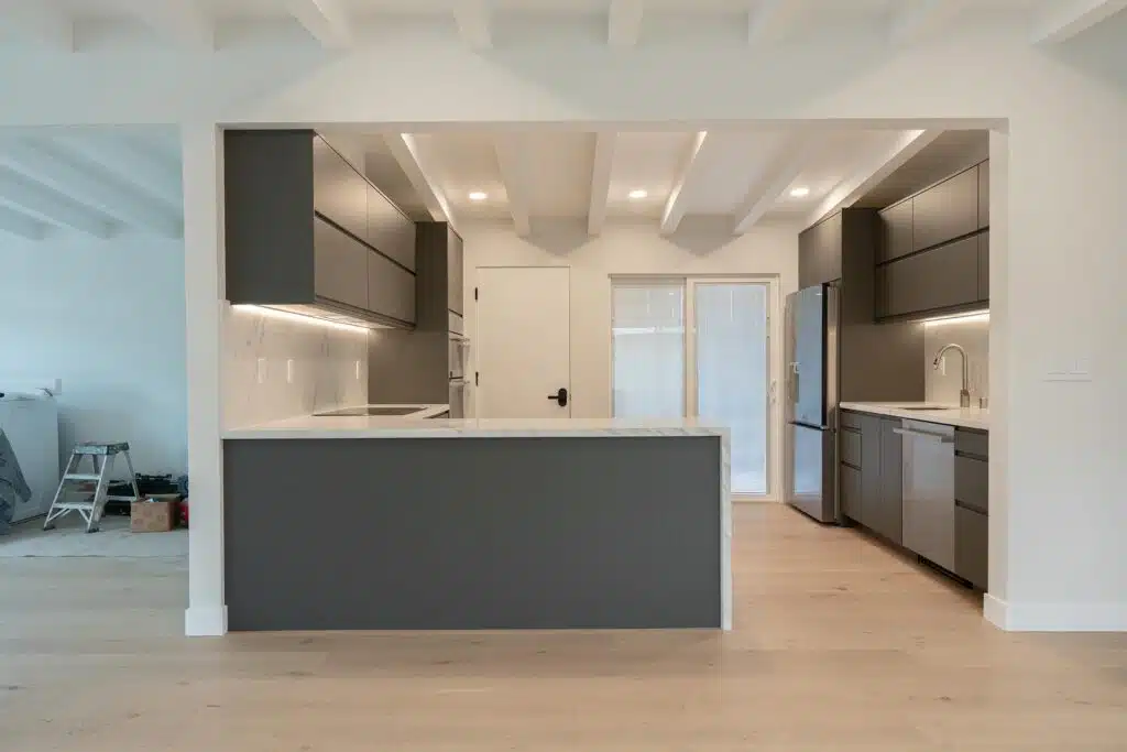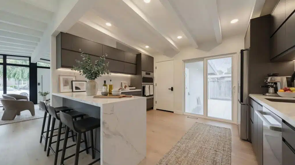 Modern Kitchen Remodel: Custom cabinetry, quartz countertops, and new appliances brought the kitchen into the present while honoring the minimalist charm of the original.