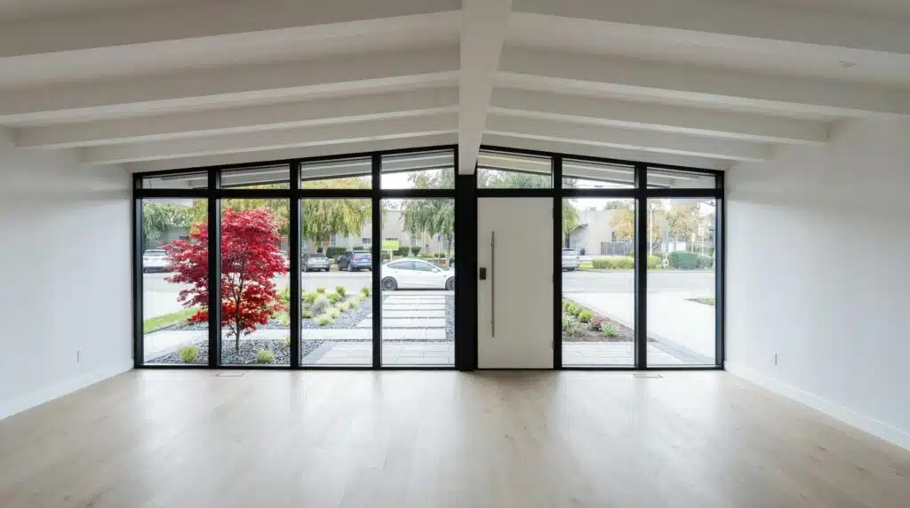 Architectural Front Extension: Added new square footage to the front of the home with a prominent structure designed around floor-to-ceiling statement windows.