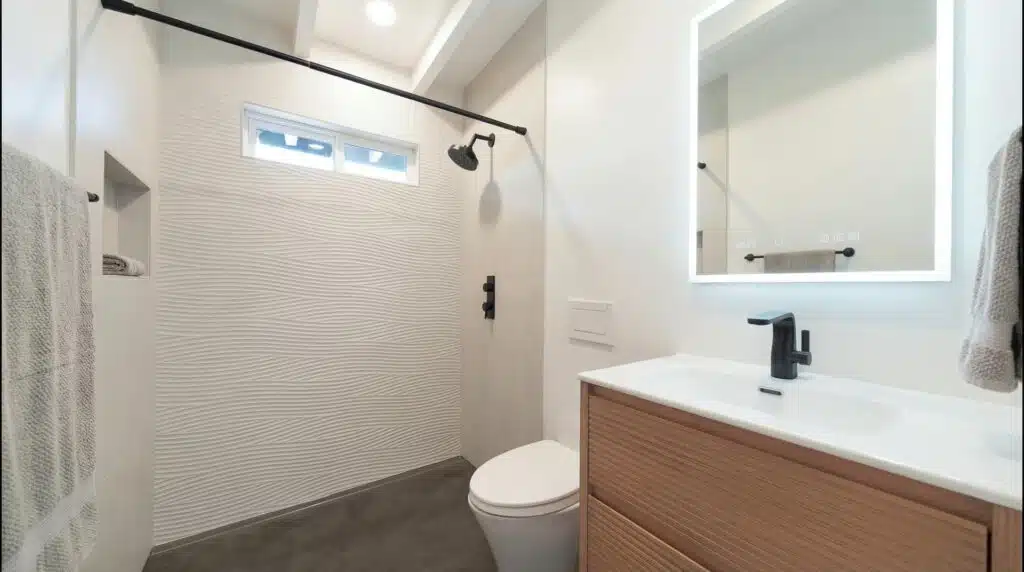 Bathroom Remodel: Upgraded fixtures, tilework, and lighting created a serene, modern space.
