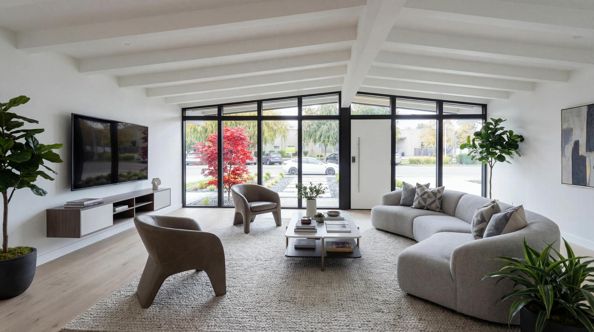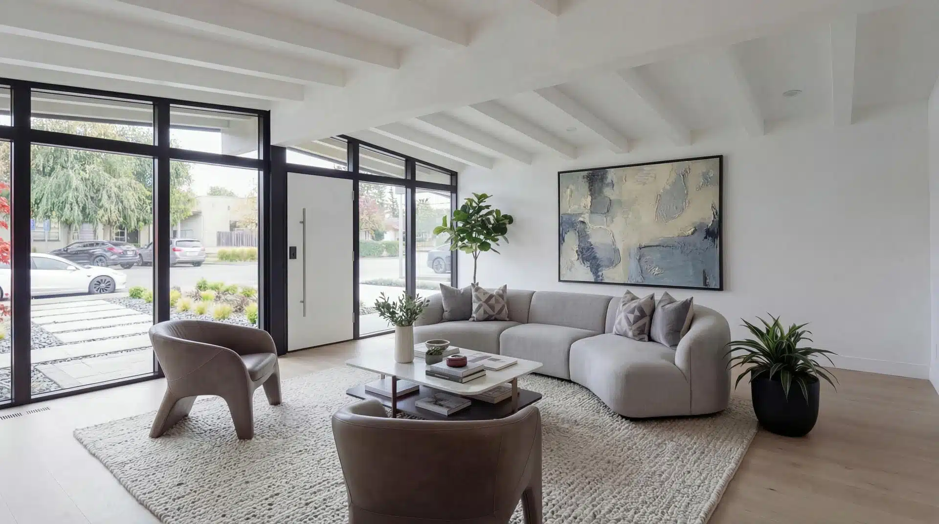 Architectural Front Extension: Added new square footage to the front of the home with a prominent structure designed around floor-to-ceiling statement windows.